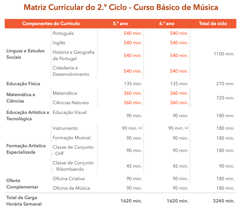 Veja o desenho curricular do 2.º Ciclo com mais detalhe aqui.
