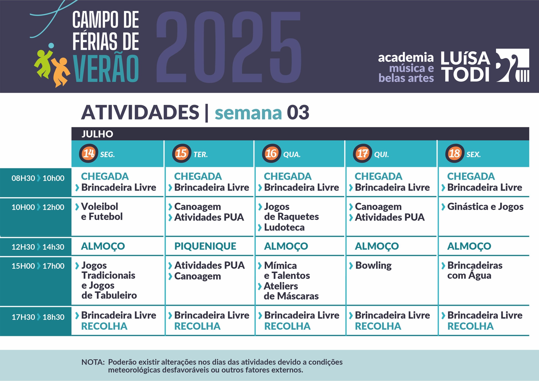 Consulte o plano completo e descubra tudo o que preparámos para cada semana do Campo de Férias 2025. Diversão, aprendizagem e muita criatividade à espera dos mais novos!